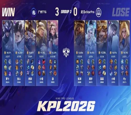 体育播报1月24日宣 2026KPL春季赛本场比赛是由广州TTG对阵到武汉eStarPro!